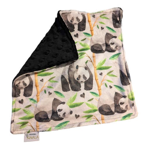 Petite doudou réconfort panda en minky carré toute douce 10 pouce x 10 pouce.