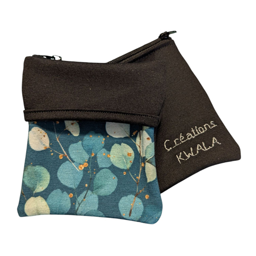 Portefeuille pour le poignet avec 2 pochettes pour mettre cartes, monnaies et plus. Motif de feuilles d’eucalyptus (L’image du produit envoyé peux être légèrement différente que celle illustrée)